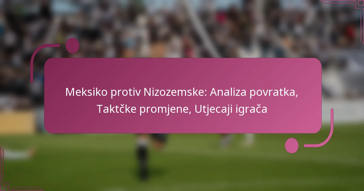 Utakmica između Meksika i Nizozemske sadržavala je nekoliko ključnih trenutaka koji su značajno utjecali na ishod, posebno tijekom faze preokreta. Taktičke promjene, istaknute izvedbe igrača i psihološki faktori igrali su ključne uloge u oblikovanju dinamike utakmice.